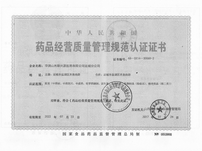 華潤山西康興源醫(yī)藥通過了國家新版GSP認(rèn)證,連續(xù)多次榮獲政府主管部門授予的“山西省誠信企業(yè)”榮譽(yù)稱號;是山西省兩家冷鏈技術(shù)最先進(jìn)的商業(yè)企業(yè)之一;被省衛(wèi)生廳確定為“全省基本藥物配送企業(yè)”。